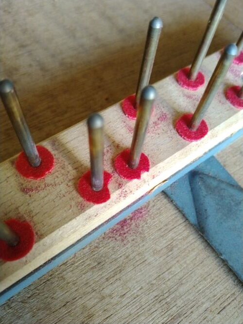リニューアルしたピアノですが、「元々なかった機構」をつけたことによるトラブル。元の部品を加工し、新しい機構を取り付けることが裏目に出たケースです。